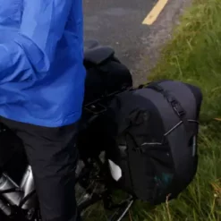 La paire de sacoches pèse 2040 grammes. Une sangle est présente pour pouvoir porter les sacoches en bandoulière ainsi que d’une poignée de portage pour faciliter le transport à la main. De couleurs rouge ou granit au choix, elles disposent de parties réfléchissantes afin de gagner en visibilité dans les zones à faible luminosité.